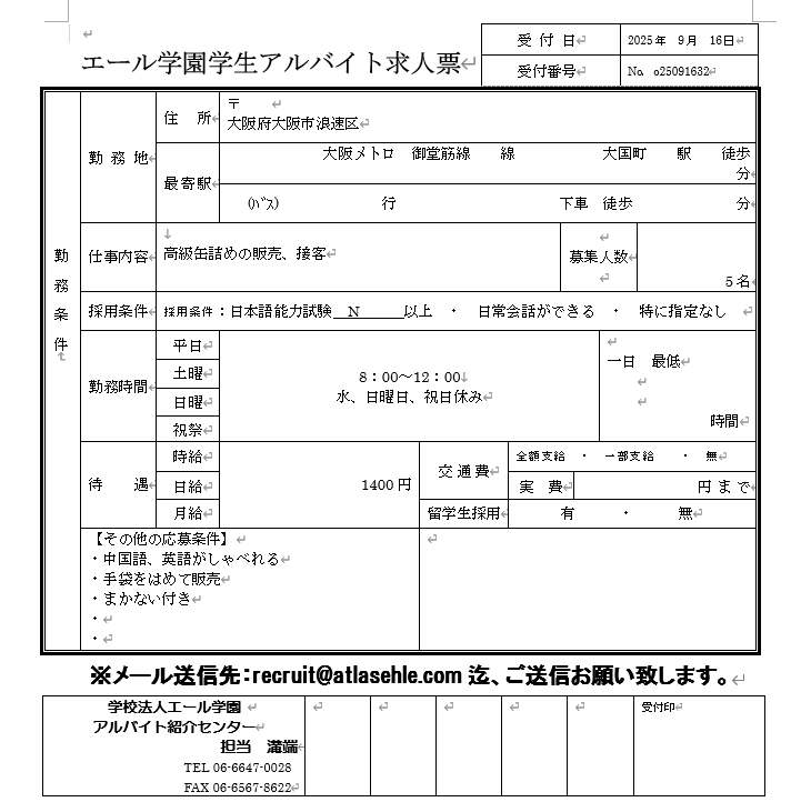 【アルバイト紹介センター】