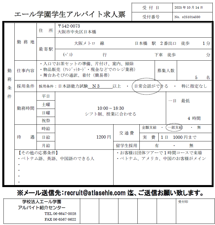 バスツアーでおこしのお客様に、劇場で舞妓さんの踊りなどを鑑賞いただく際の案内とショールームでおみやげ・化粧品・食品などの販売をおこなうお仕事です。