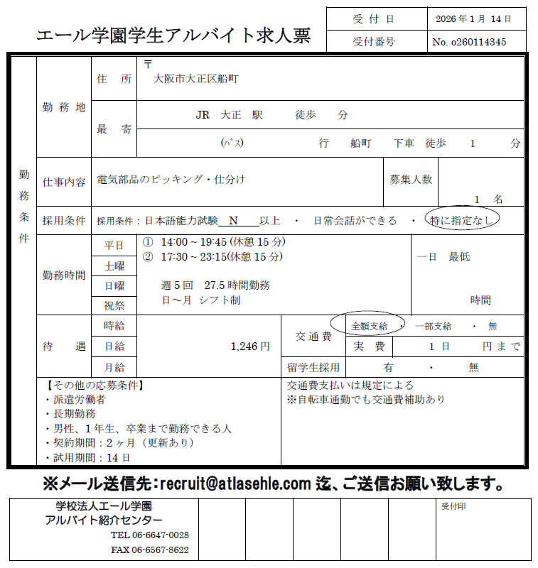 物流センターで電気部品のピッキングや仕分け作業を行う仕事です。